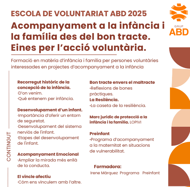 Esta formación ofrece información clave y herramientas prácticas para personas voluntarias que participan en proyectos de acompañamiento a la infancia y la familia. A través de una mirada crítica centrada en el buen trato, se proporcionan recursos para comprender el desarrollo infantil, la importancia del vínculo afectivo y el marco jurídico de protección, así como estrategias de intervención desde una perspectiva respetuosa, transformadora y basada en los derechos de la infancia.