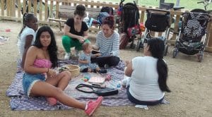 Tras dos horas de revolcones por la arena, las mamis y sus nen@s hicieron un picnic en la zona de mesas, donde compartieron una agradable comida. La mayoría de ellas, nuevas participantes de Preinfant, aprovecharon para conocerse mejor.